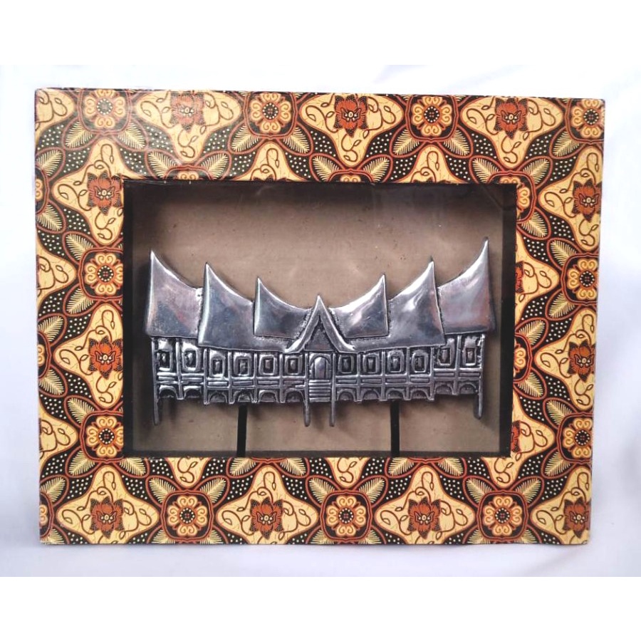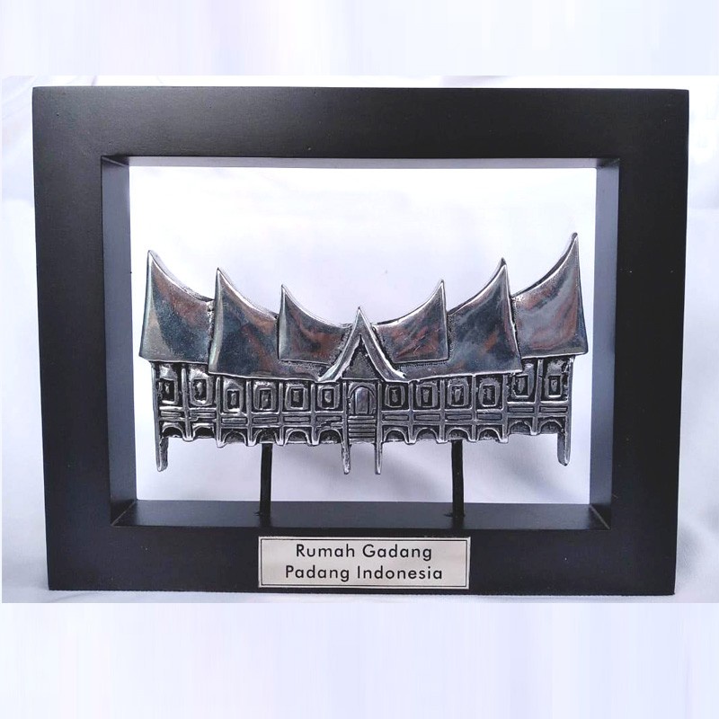 Souvenir pajangan hiasan kado plakat frame bingkai kayu Rumah Gadang Khas Minang