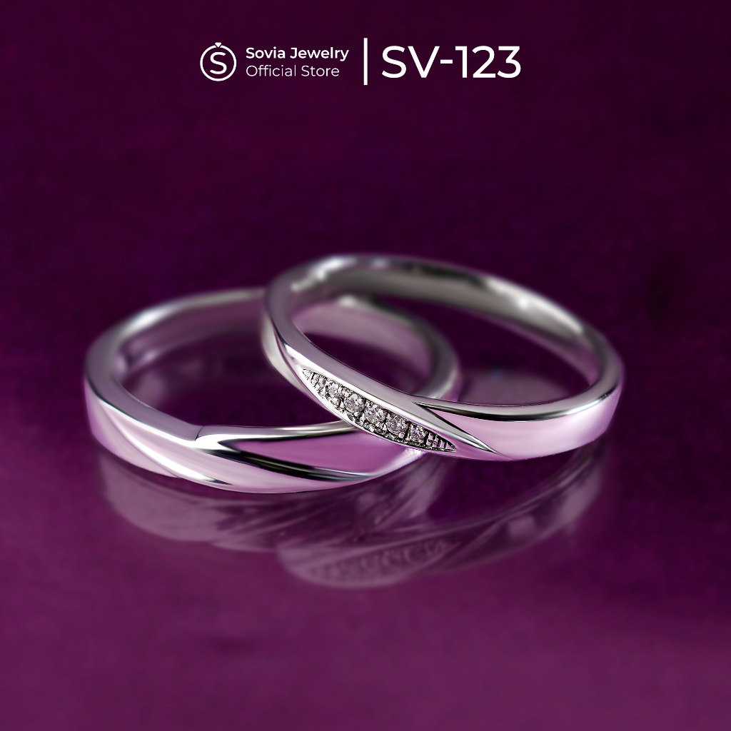 Sovia Jewelry - Cincin Couple Kawin Nikah Lamaran Palladium 50% & Emas Putih 75% Desain SV-123