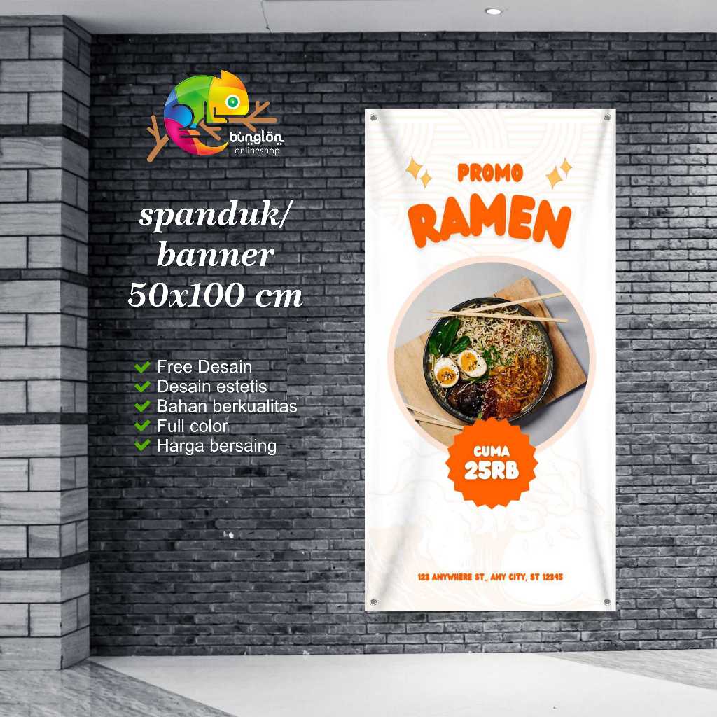 Spanduk 50x100 Banner Mie Ayam Bakso Ceker Custom Desain