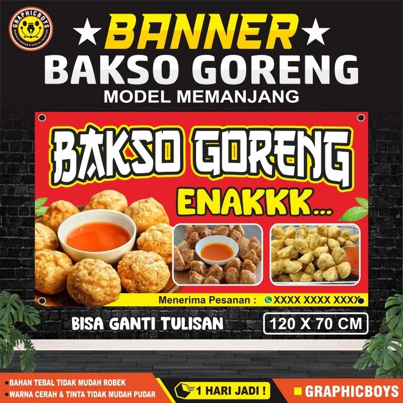 Spanduk Bakso Goreng Terbaru, Banner Bakso Goreng Terbaru Ukuran 120 X 70 Cm
