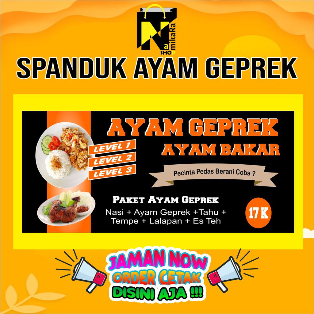 Spanduk Banner Backdrop Ayam Geprek/ Banner Kedai Ayam Geprek/ Spanduk Ayam Geprek Termurah