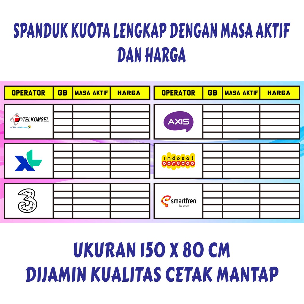 Spanduk / Banner / Backdrop Konter Pulsa Banner Kuota 150x80 cm