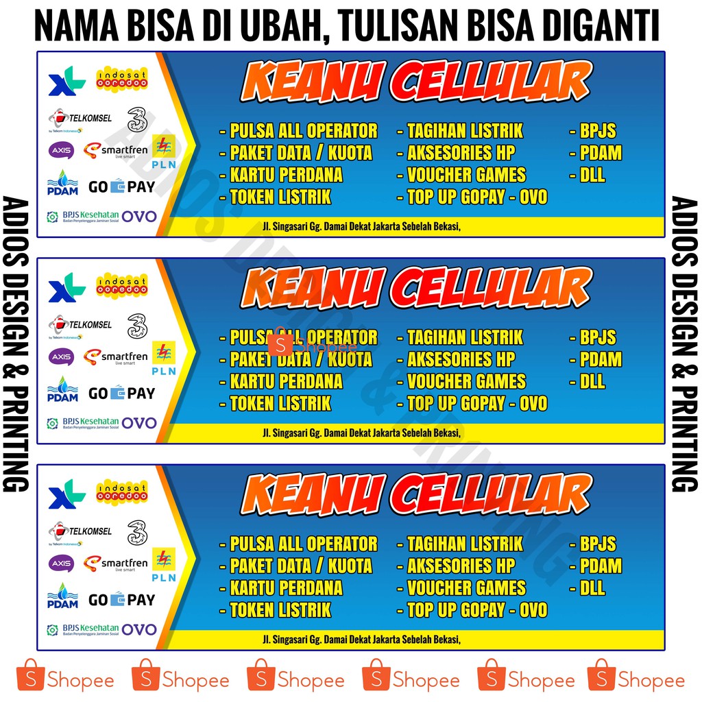 Spanduk / Banner / Backdrop Konter Pulsa Ukuran / Spanduk Pulsa 160x50 cm Model Baru