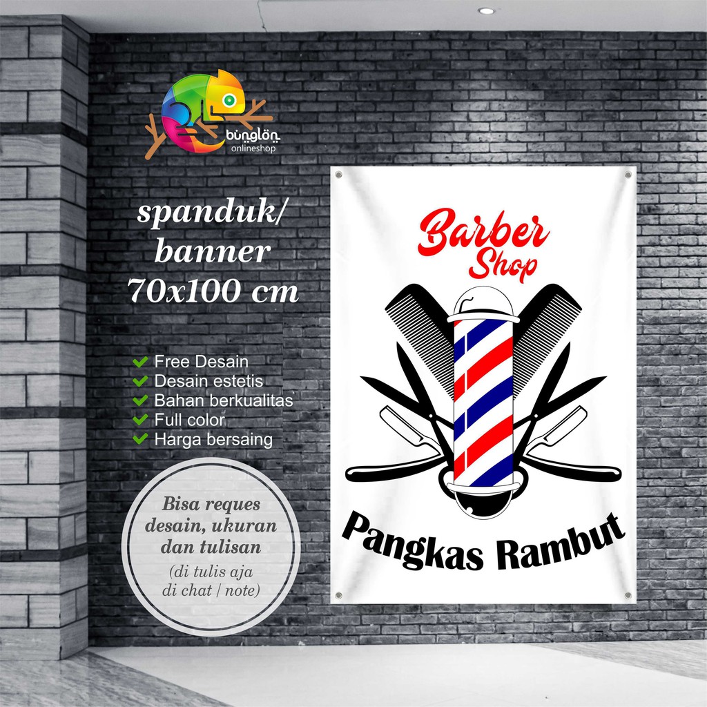 Spanduk, Banner Berdiri Pangkas Rambut, Barber Shop Putih