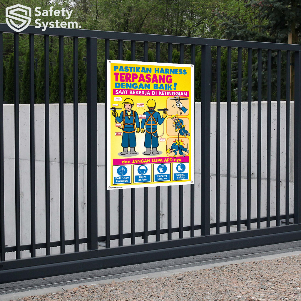 Spanduk Banner K3 Keselamatan Kerja Pakailah Selalu Memakai APD Harness Terpasang Dengan Baik Saat Bekerja Di Ketinggian