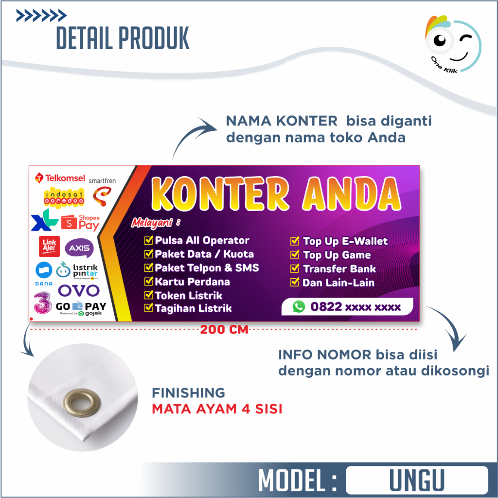 Spanduk Banner Konter / Banner Spanduk Murah / Aksesoris Konter / Variasi Warna -ONEKLIK.1