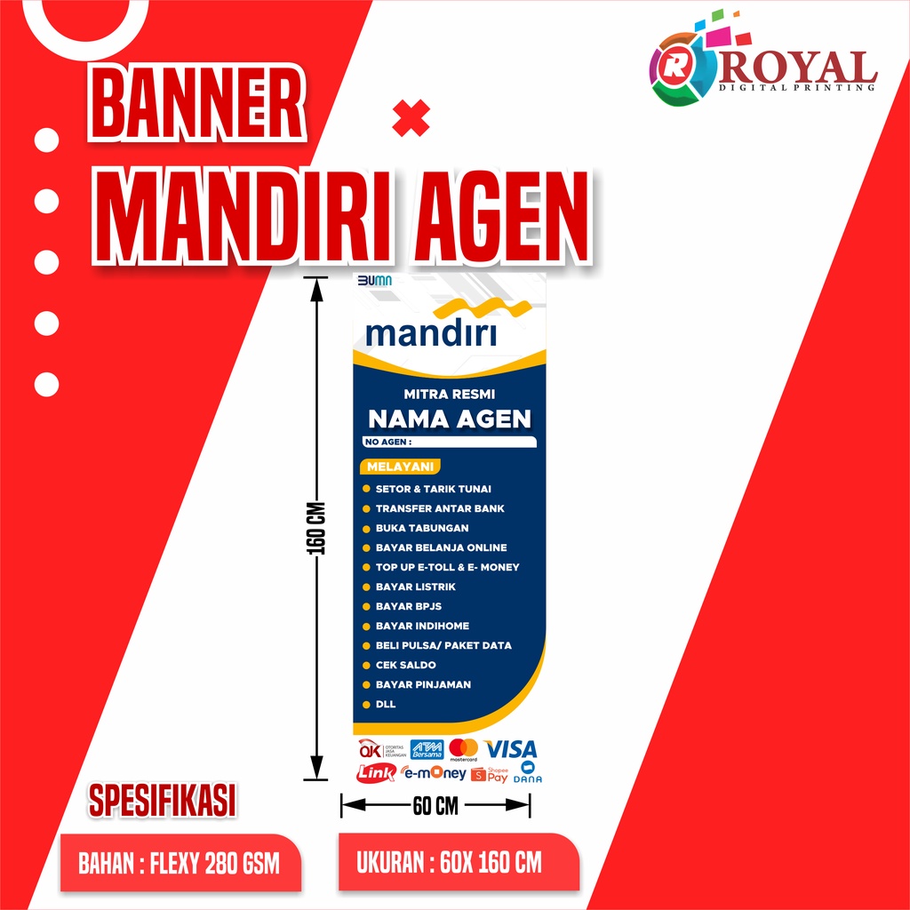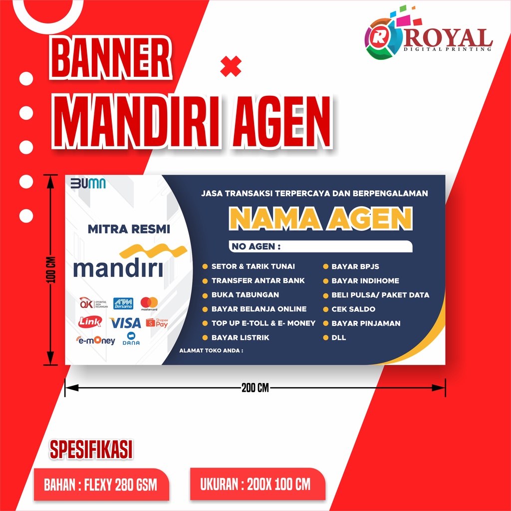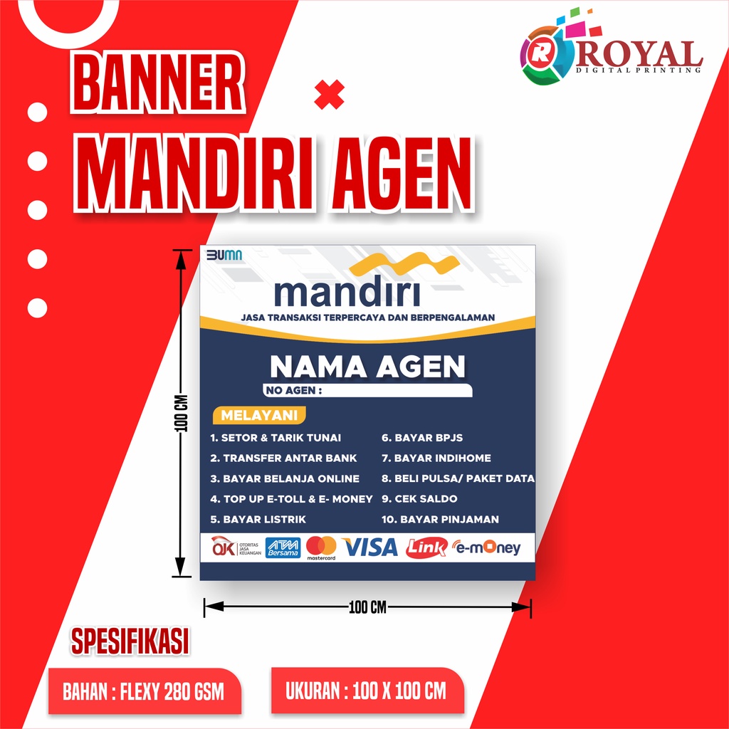 Spanduk Banner Mandiri Agen/ Agen Mandiri, Banner Murah/ Banner custom/ Bisa COD