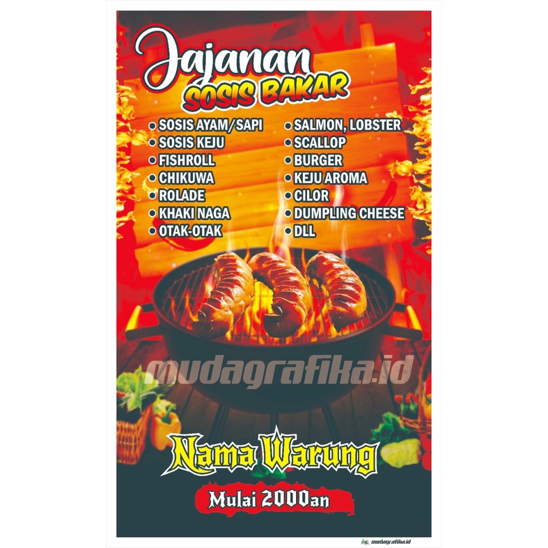 Spanduk/Banner Sosis Bakar/Aneka Bakaran Berdiri untuk Plang Pinggir Jalan 60x100