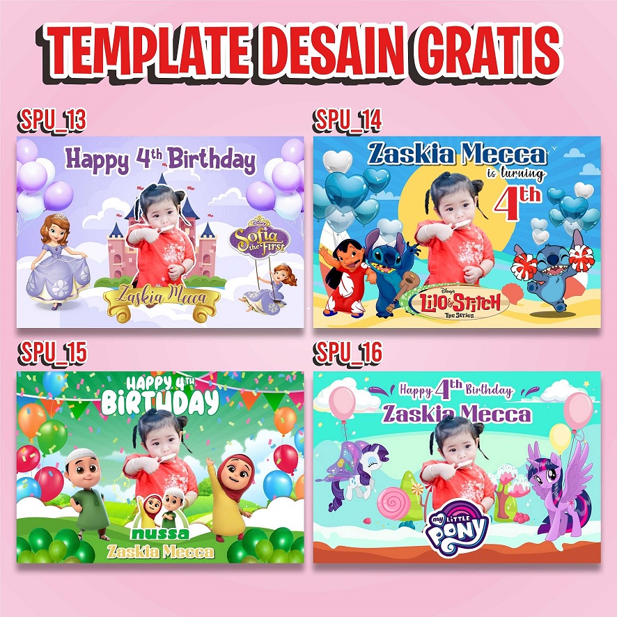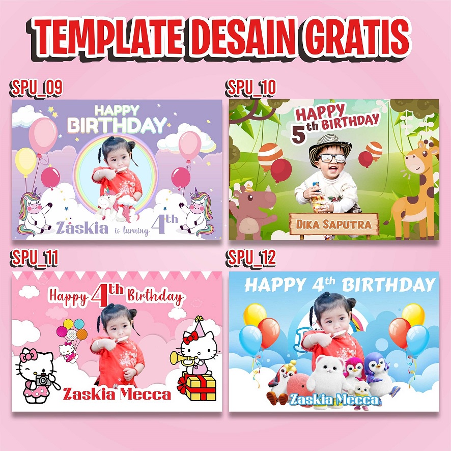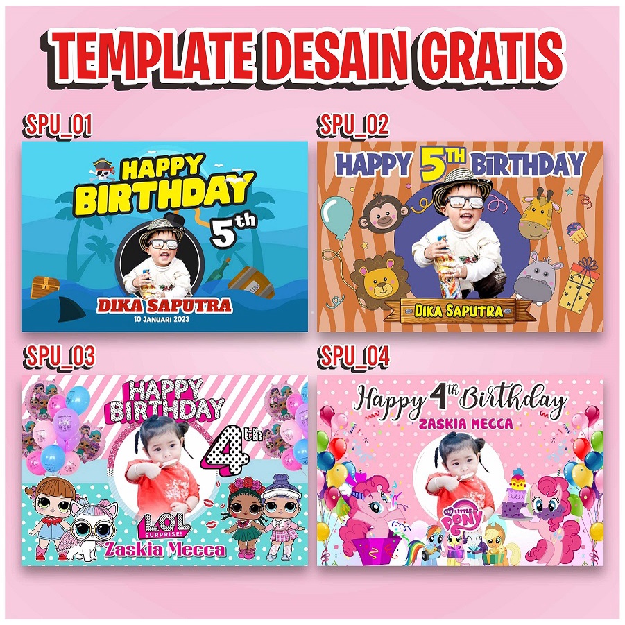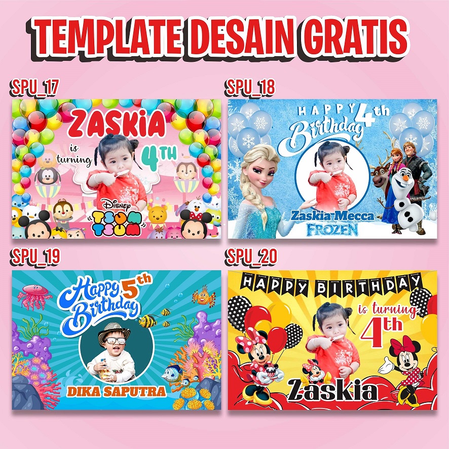 Spanduk Banner Ulang Tahun Anak Perempuan Laki Laki Custom unicorn baby shark frozen GRATIS DESAIN