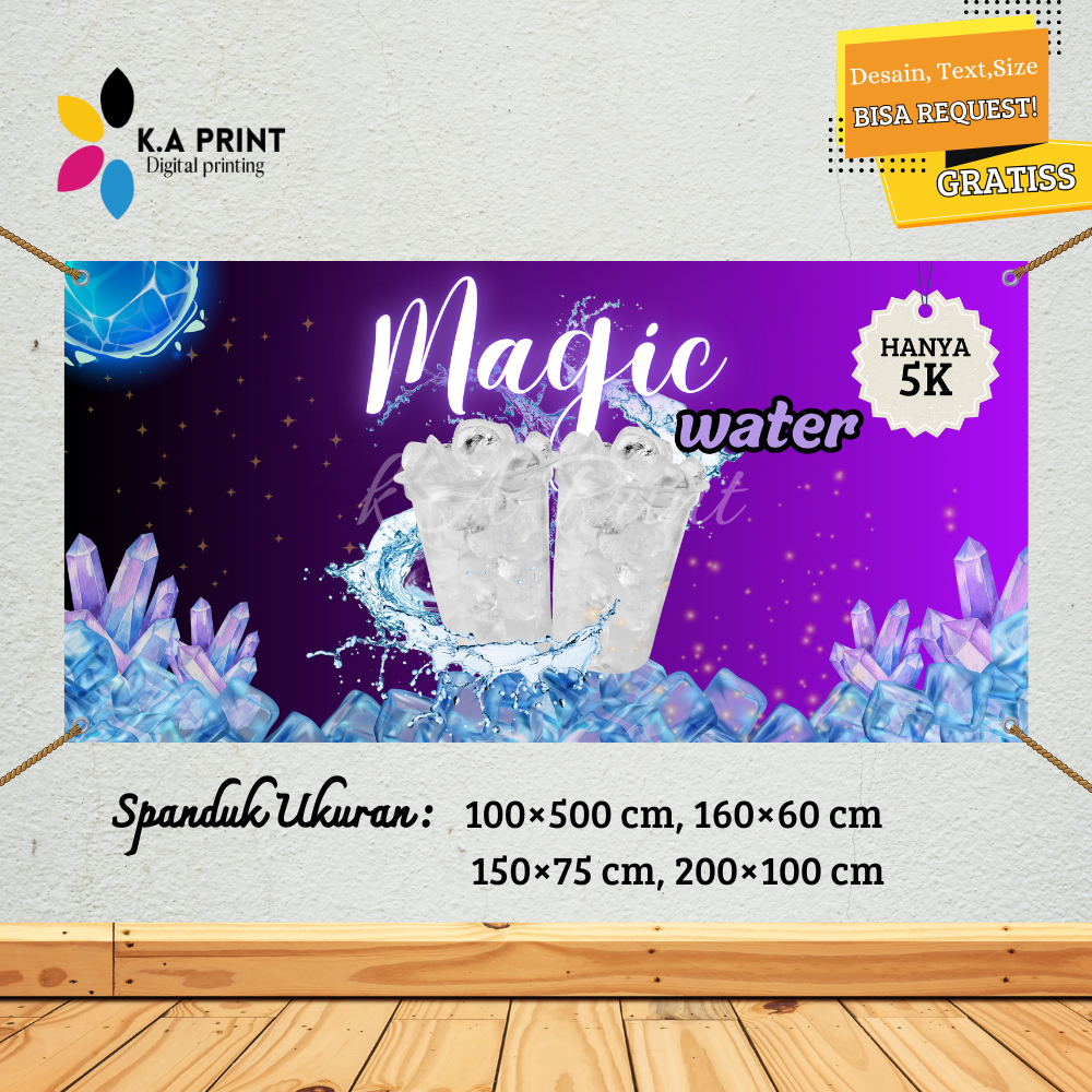 Spanduk Magic Water Cetak Spanduk Banner Jualan Magic Water Viral Minuman Kekinian Bisa Request Ungu MMT Spanduk Custom 200x100 [HARGA TERJANGKAU]