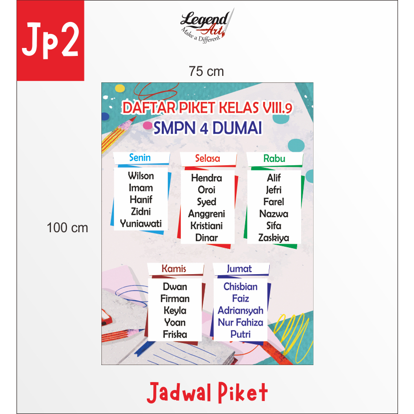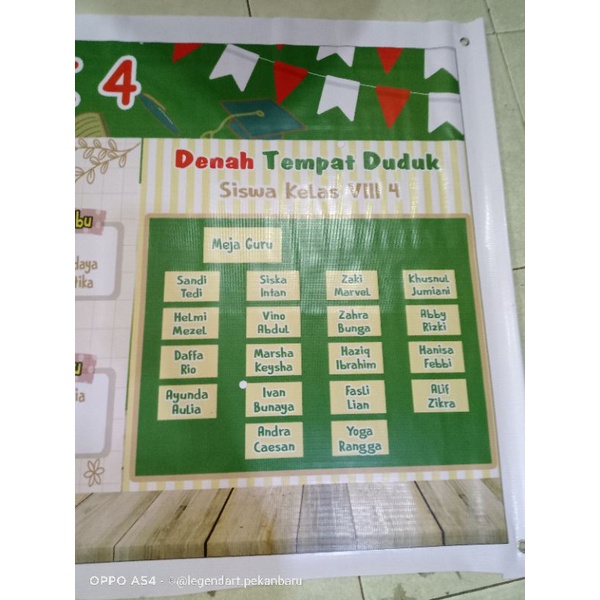 Spanduk Perangkat Kelas - Daftar Piket, Struktur Kelas, Denah, Daftar Pelajaran 100x75cm - Free Desain