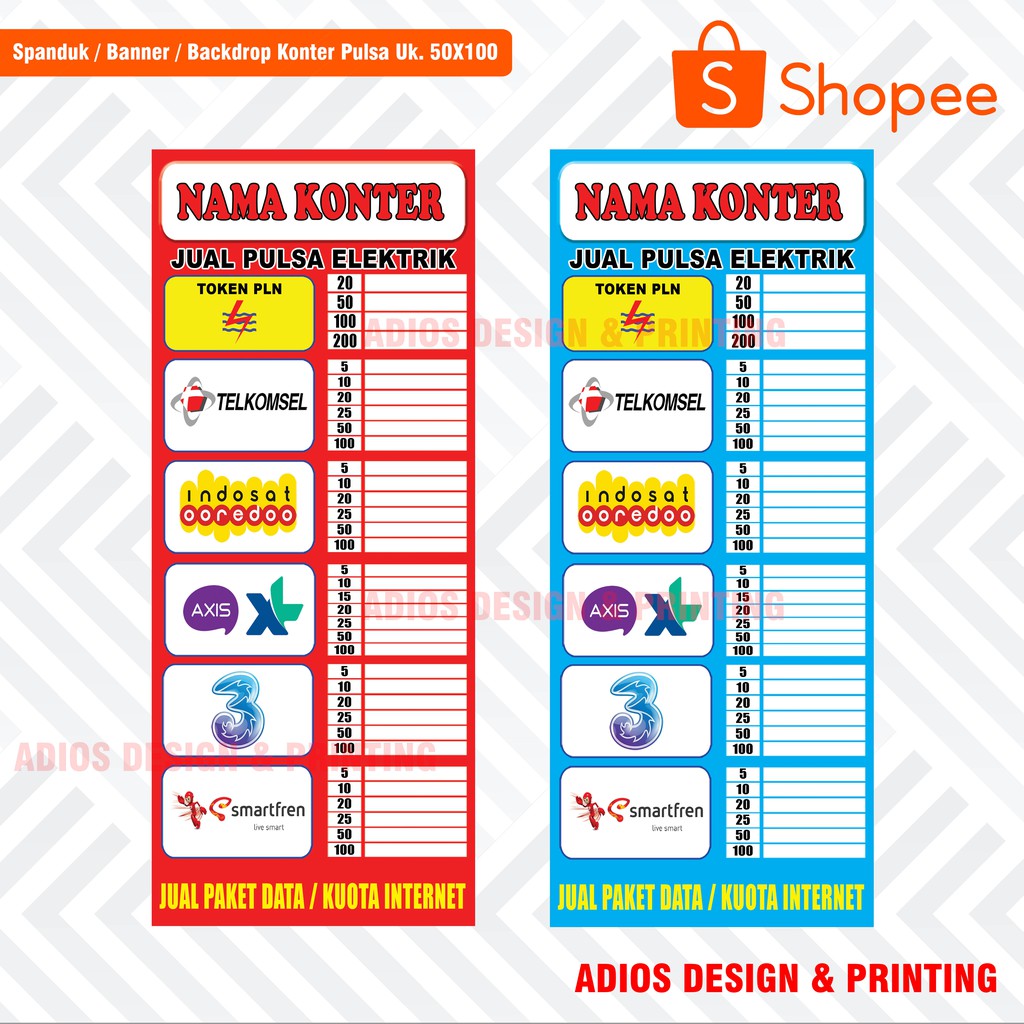 Spanduk Pulsa Banner Tabel Harga Pulsa Konter - Bisa Tulis Sendiri 50x100 nama bisa diganti