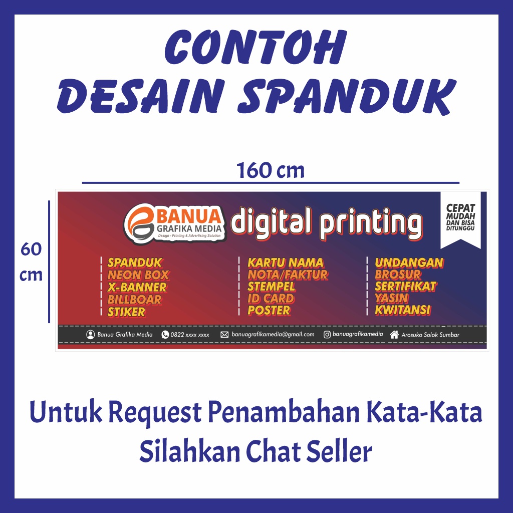 Spanduk Sepanduk Banner Baner Bener Backdrop Baliho Plang Promosi Usaha Percetakan Digital Printing Sablon Poster Undangan Stiker Ukuran 160x60cm Satu 1 M Meter Bisa COD Free Bebas Request Custom Gratis Desain Landscape Pojok Kreatif