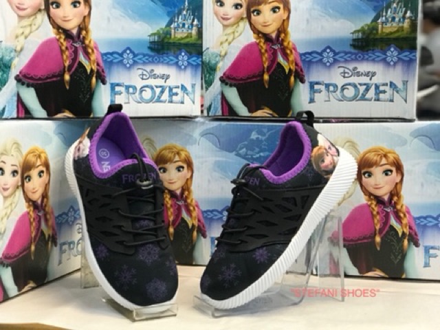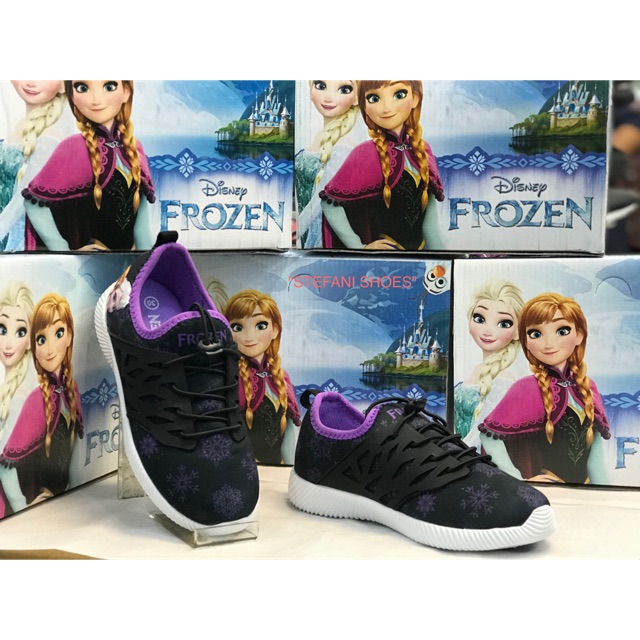 Sepatu Anak Perempuan Karakter Disney Frozen Original Indonesia Hitam Putih Ungu