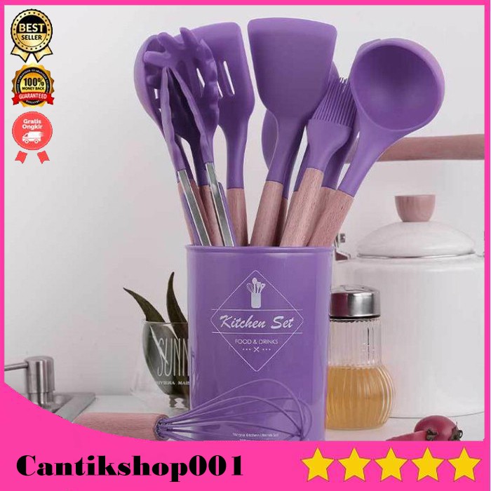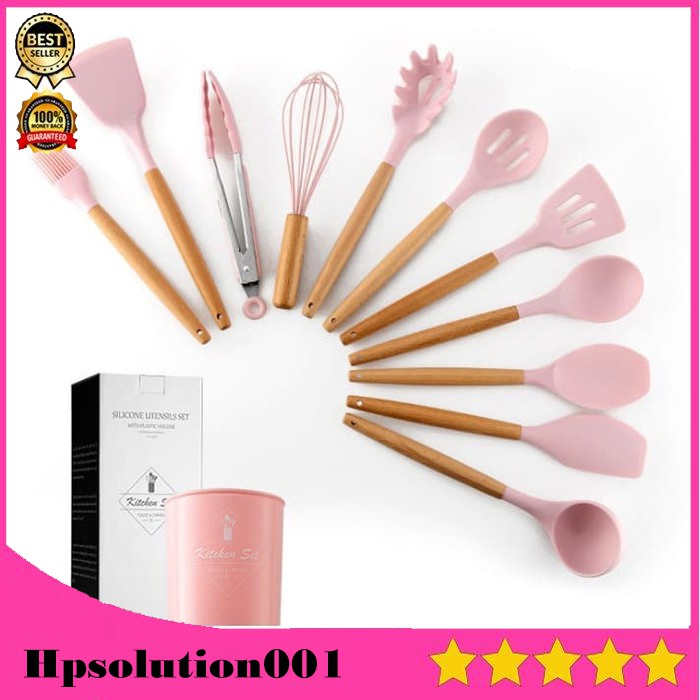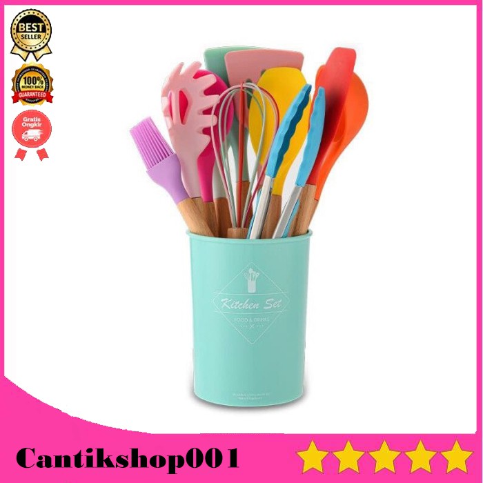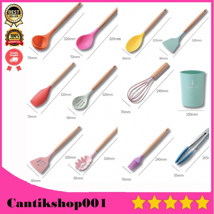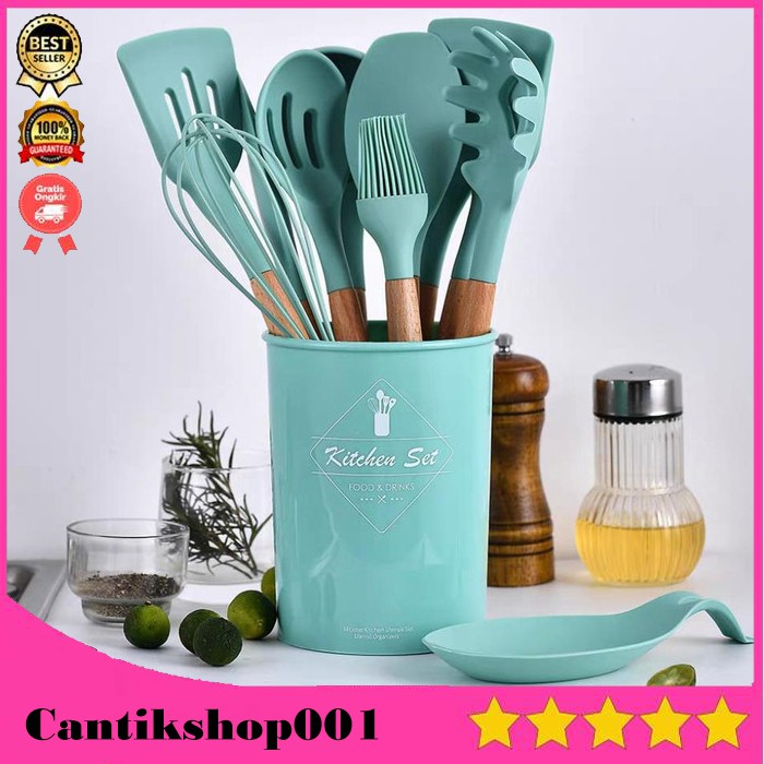 Spatula Silikon Set Sutil Peralatan Masak Utensil Set Silicone 11pcs