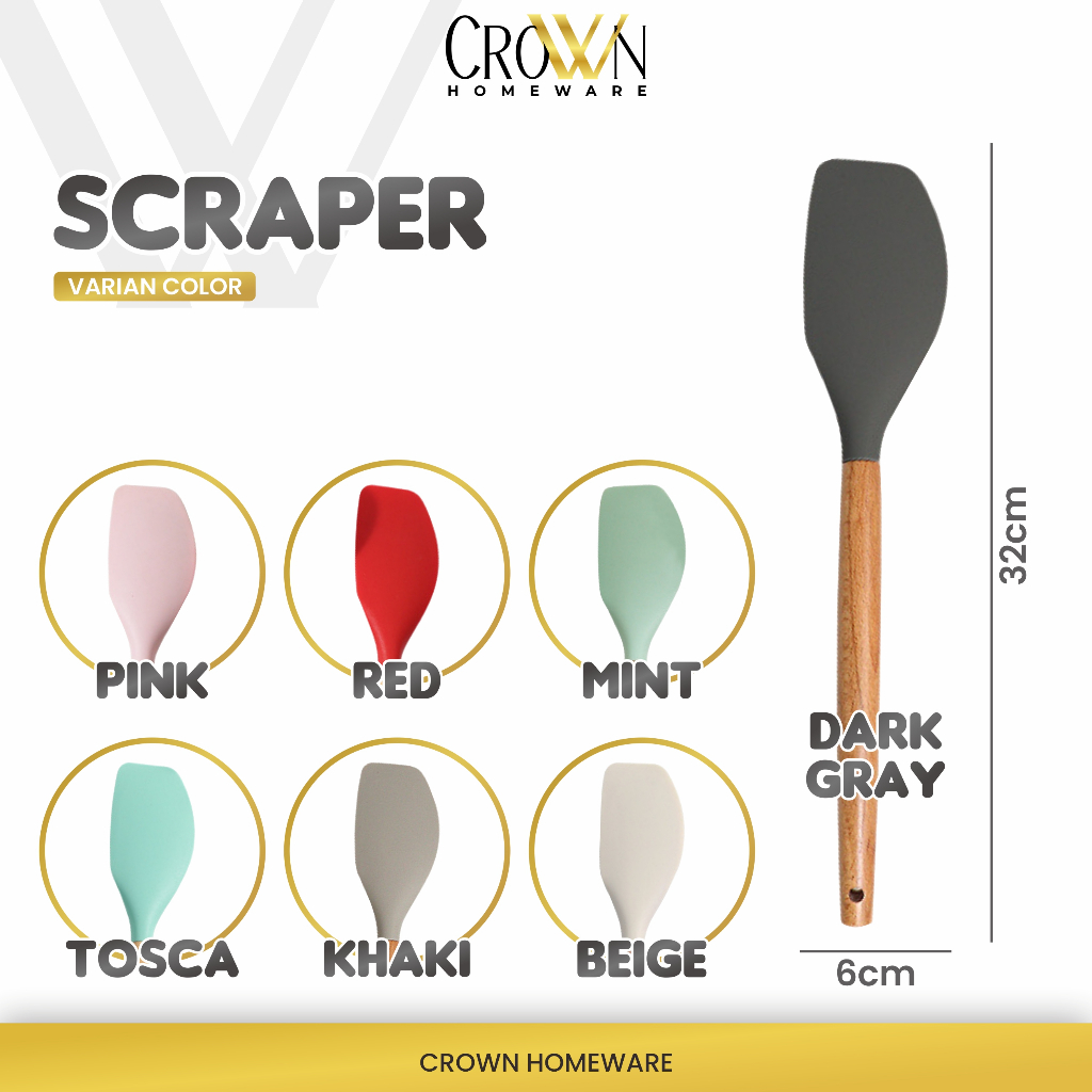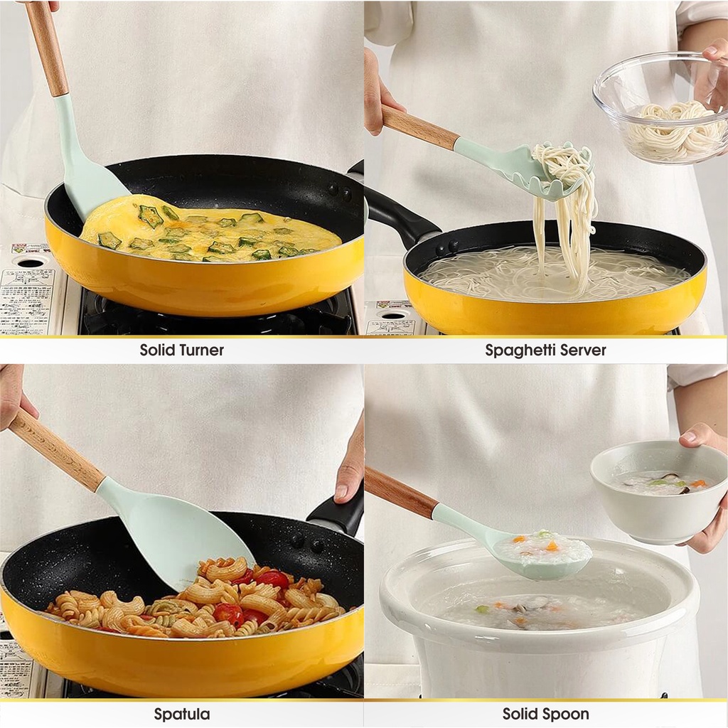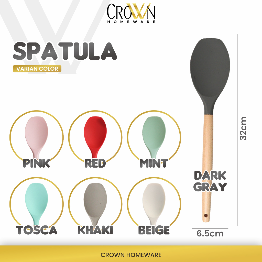 Spatula Sutil Pencapit Pengocok Telur Utensil Silicon Silikon Silicone Kayu Tahan Panas