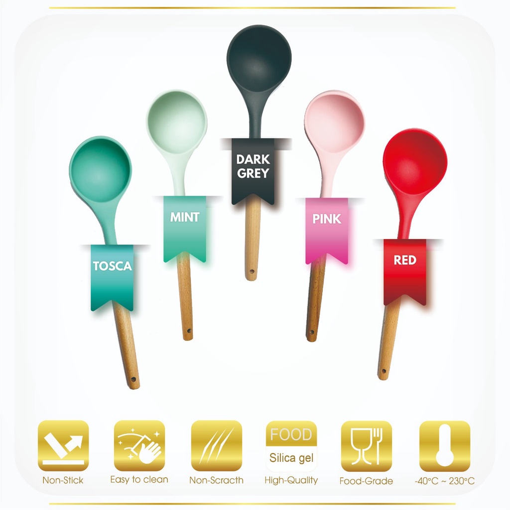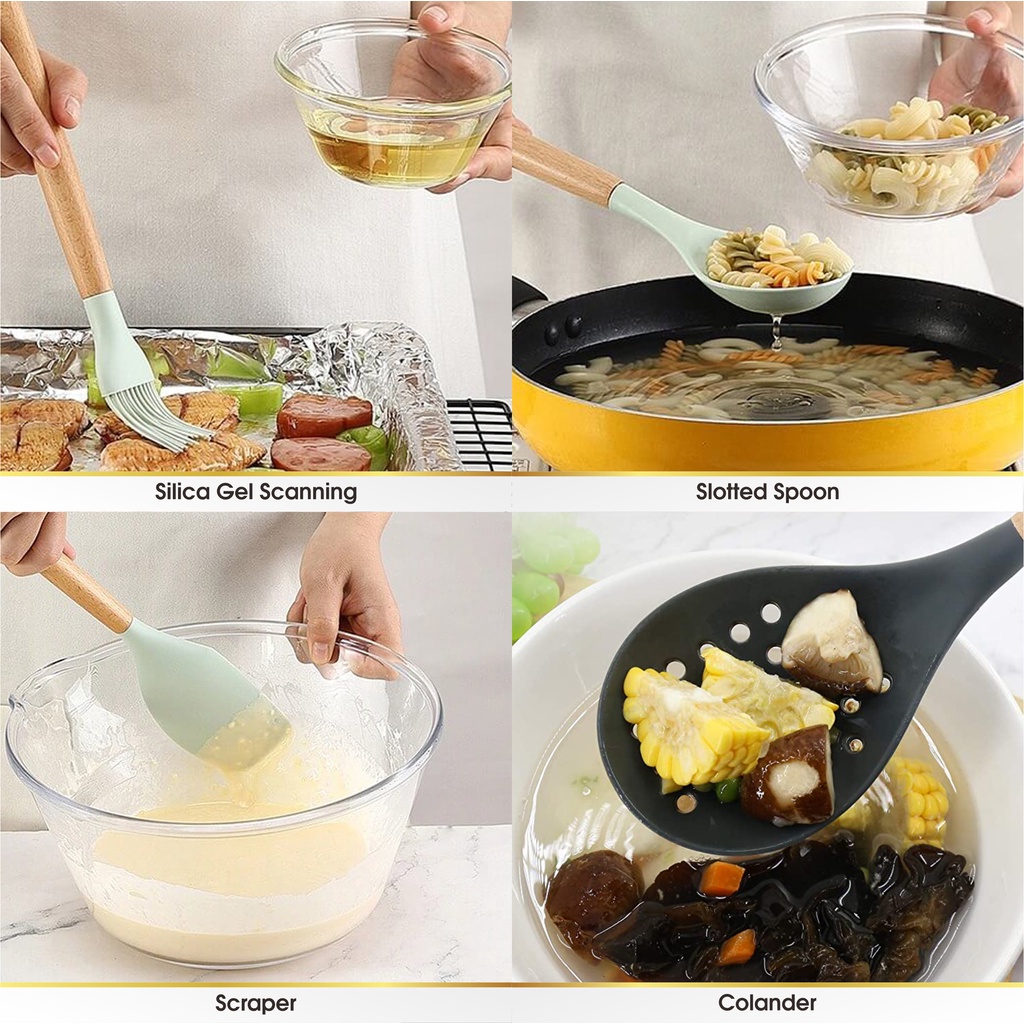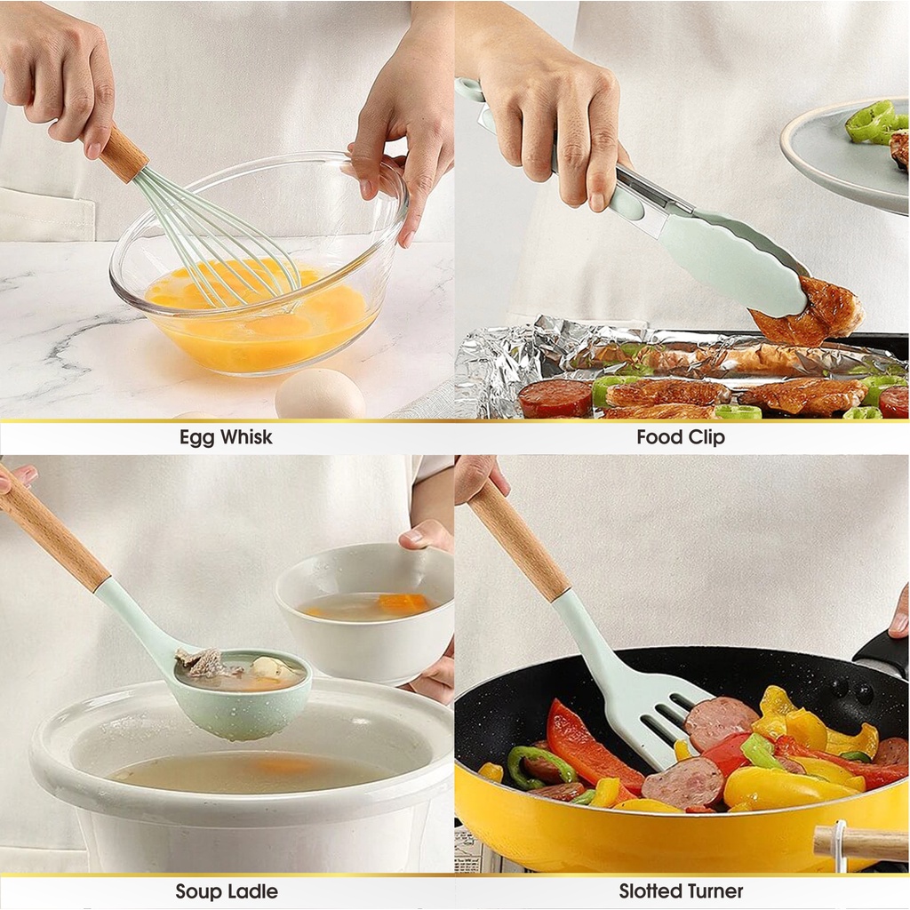 Spatula Sutil Pencapit Pengocok Telur Utensil Silicon Silikon Silicone Kayu Tahan Panas