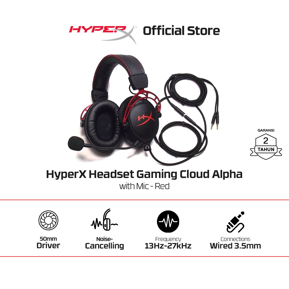 HyperX Headset Gaming Cloud Alpha Wired - Black-Red Noise Cancelling Leather Stereo Bass Android iOS Led RGB Microphone Promo Cicilan Ringan