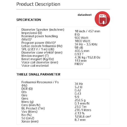 Speaker 18inch pa 113187 sw ACR Fabulous original