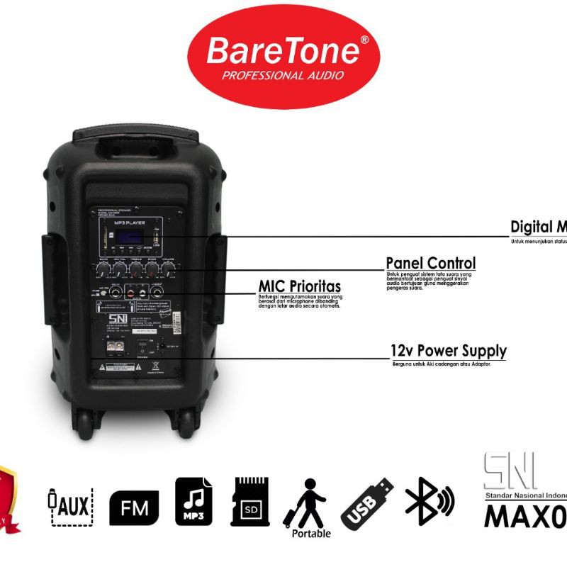 Speaker Aktif Portable BaretoneBaretone Bluetooth Wireles Max08EB