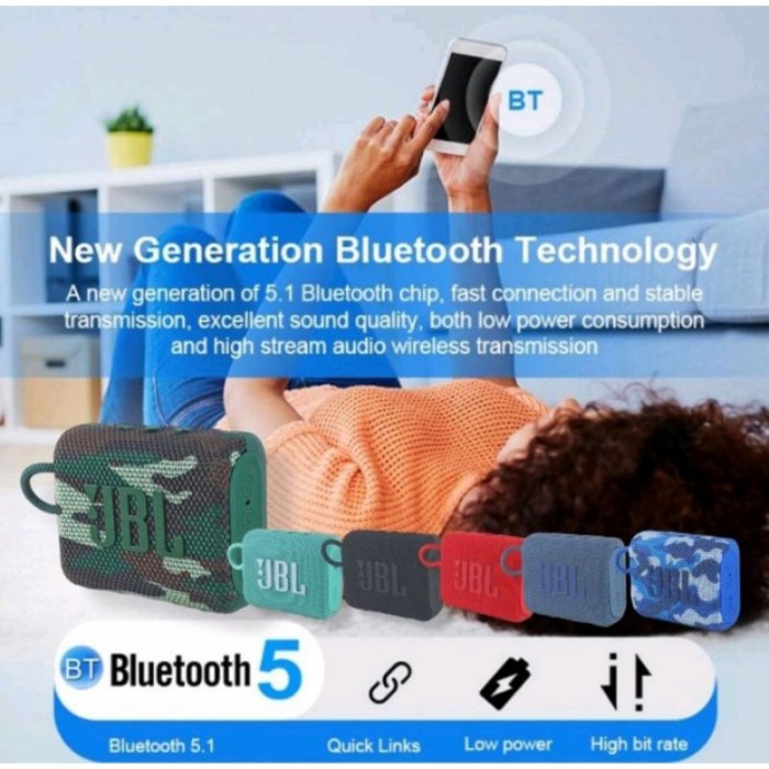 Speaker Bluetooth JBL GO 3 Portable Wireless Speaker GO3 Kwalitas A - Biru Army