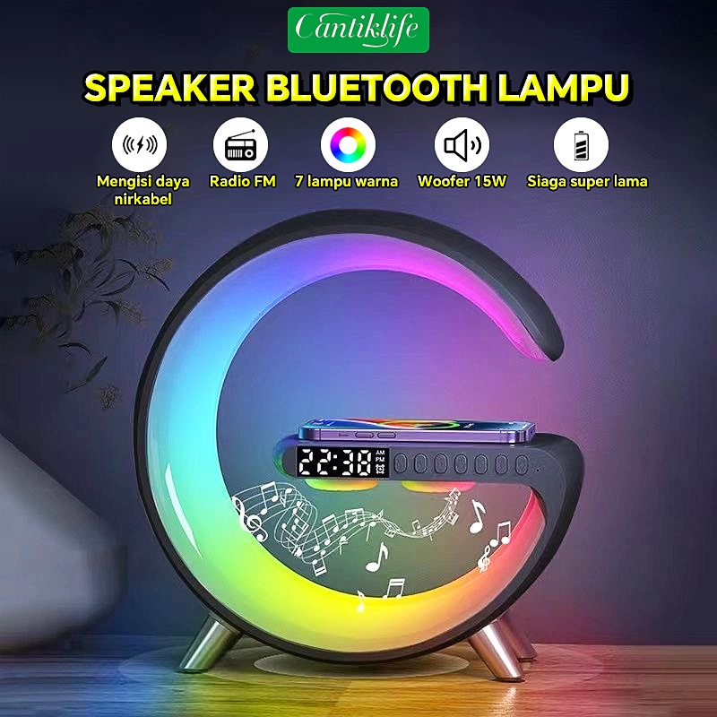 Speaker Bluetooth Lampu 15W Pengisian Nirkabel LED Lampu Bass Tinggi Tampilan Waktu Pintar Fungsionalitas Modis
