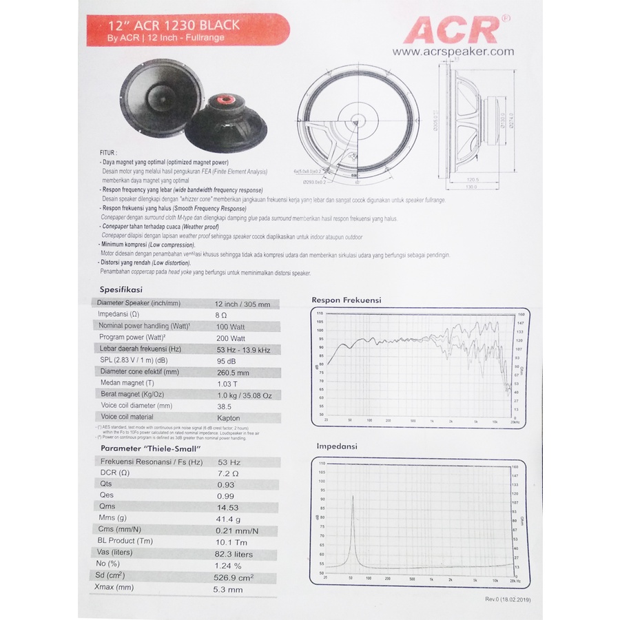 Speaker Full Range 12 inch / ACR 1230 BLACK 12" ( 100/200 watt, 8 ohm )