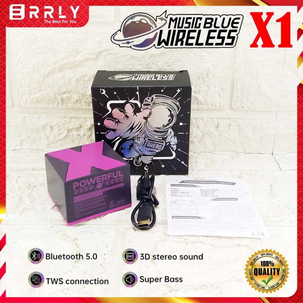Speaker Mini Bluetooth Basix X1 Wireless 5.0 Rechargeable HIFI Music Box Player Hands-Free Call Audio Player Range for Outdoor