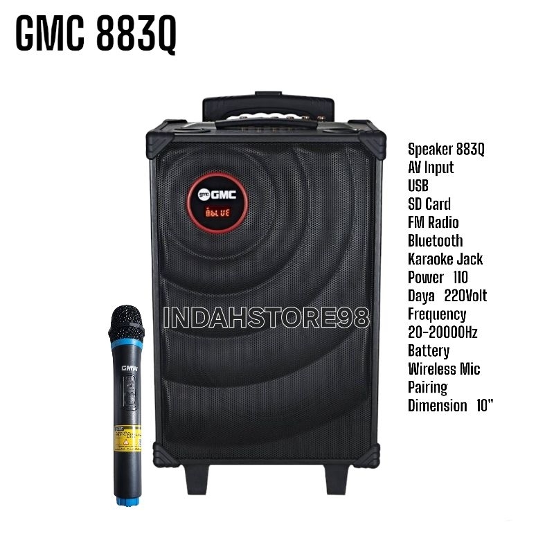 Speaker Portable 10 inc GMC 883Q Bluetooth Karaoke Extra Bass 1 Mic Wireless Original Spiker