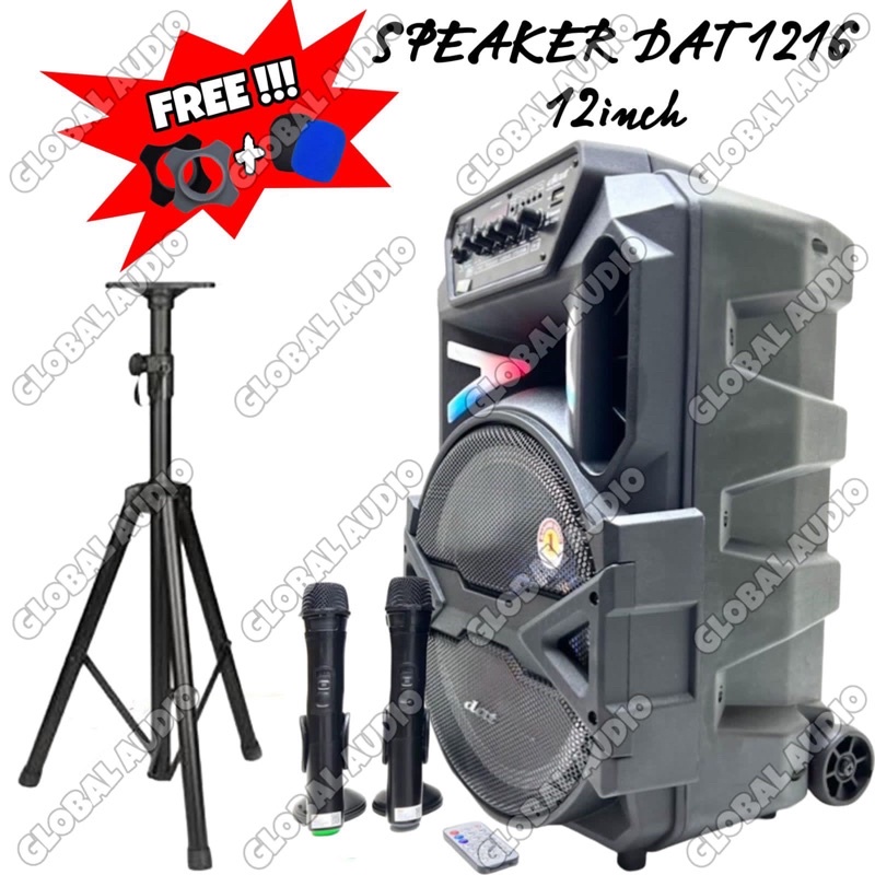 Speaker Portable DAT DT 1216 12inch 2bh Mic Wireless Plus Stand Free Busa & Ring Portable Wireless Dat Dt1216 Dat1216 ( Bisa COD )