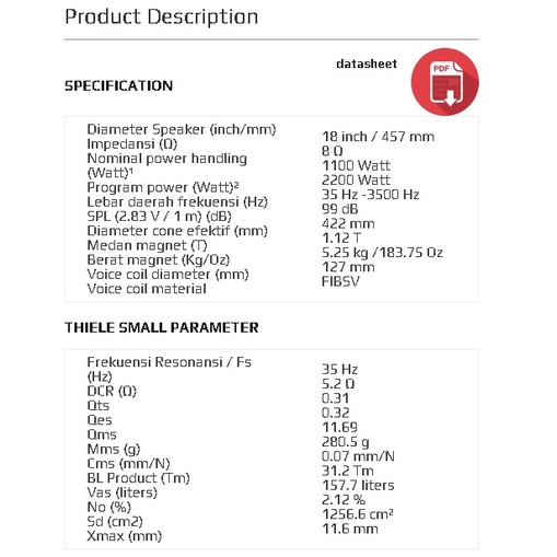 Speaker subwoofer 18 inch ACR Fabulous PA 127187 SW 2200w