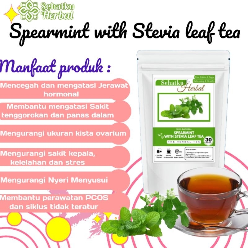 Spearmint tea with Stevia leaf tea : Teh Daun Mint dan teh Daun Stevia isi 30 tea bag