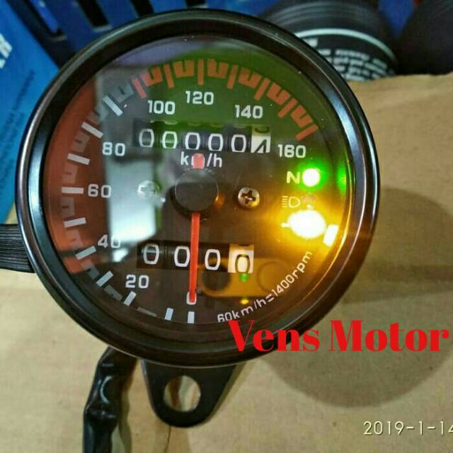 Speedometer Motor Universal Bulat Hitam/ Spidometer Motor Bulat Hitam