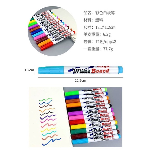 Spidol Apung 12 Spidol Ajaib Besar Spidol Whiteboard Magic Spidol Floating Markers Mainan Edukasi Anak Spidol Papan Tulis