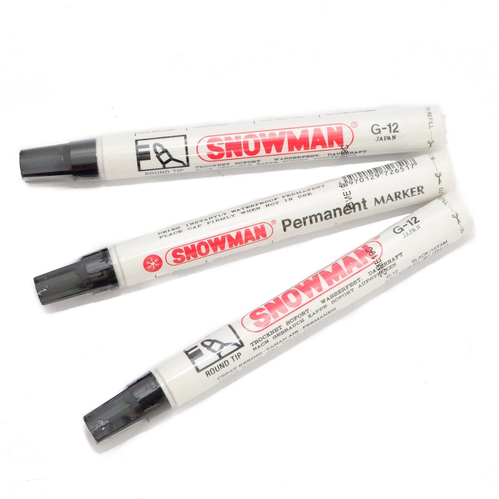 1 LUSIN Spidol Permanen Besar Snowman G12 Hitam Merah Biru Waterproof - 1 Pack Isi 12 Buah