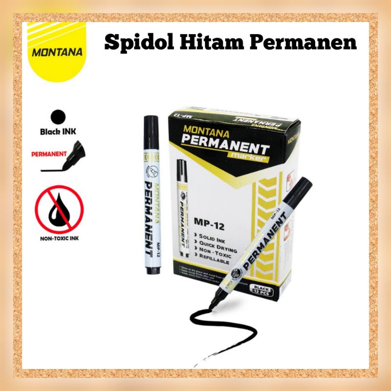 Spidol Permanen Hitam Montana MP-12 Sepidol Hitam Warna Permanent Marker MP12 Ecer Alat Tulis Tinta