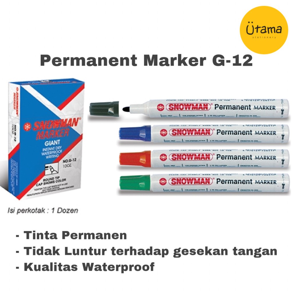 Spidol Snowman Permanen G-12 HITAM/Permanent Marker G12 BLACK (Grosir 6pcs @6.250)