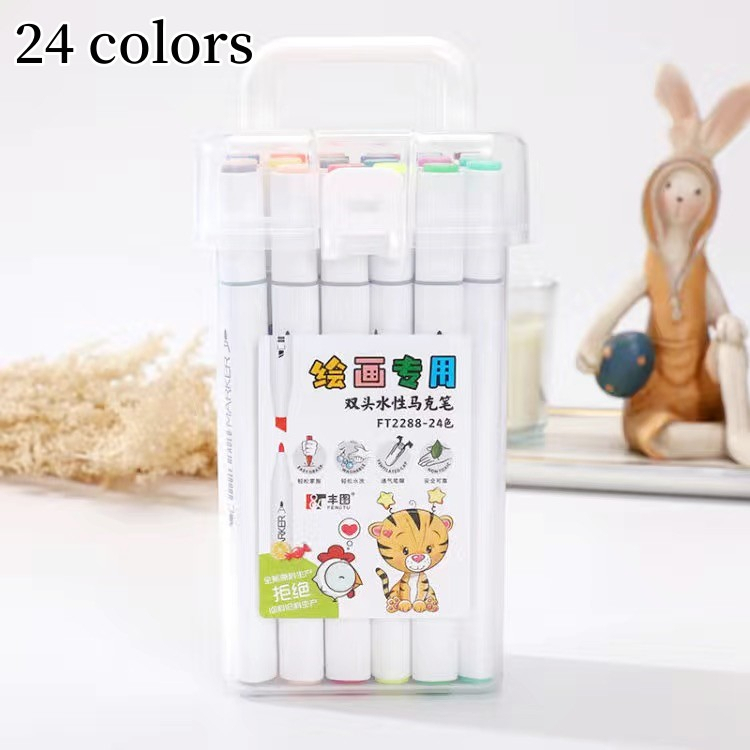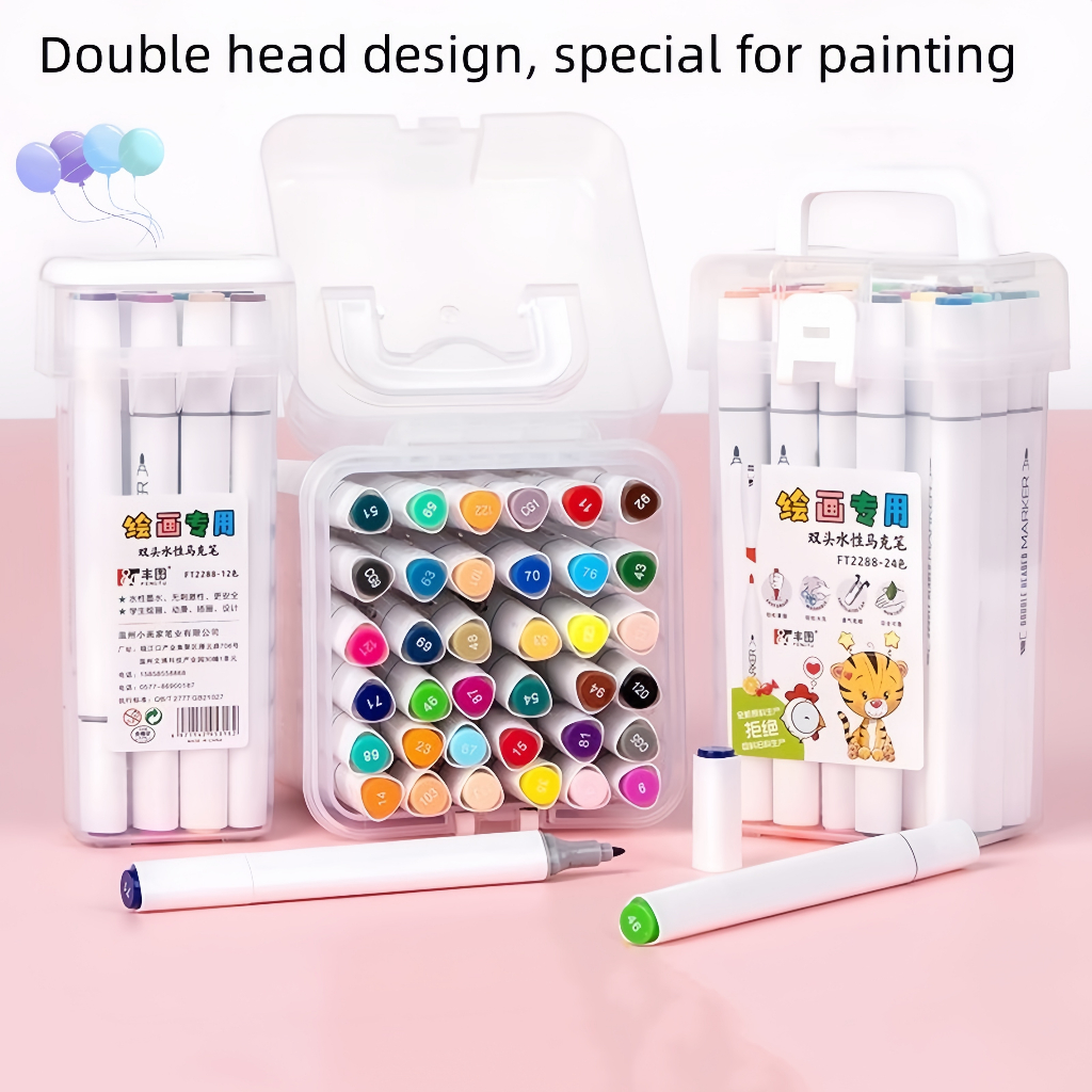 Spidol set 12/24 warna Sketch marker spidol warna 2in1 Spidol sketsa double tip dasar berkepala dua Lukisan pensil cat air seni Stabilo art marker siswa sekolah kantor pelajar anak