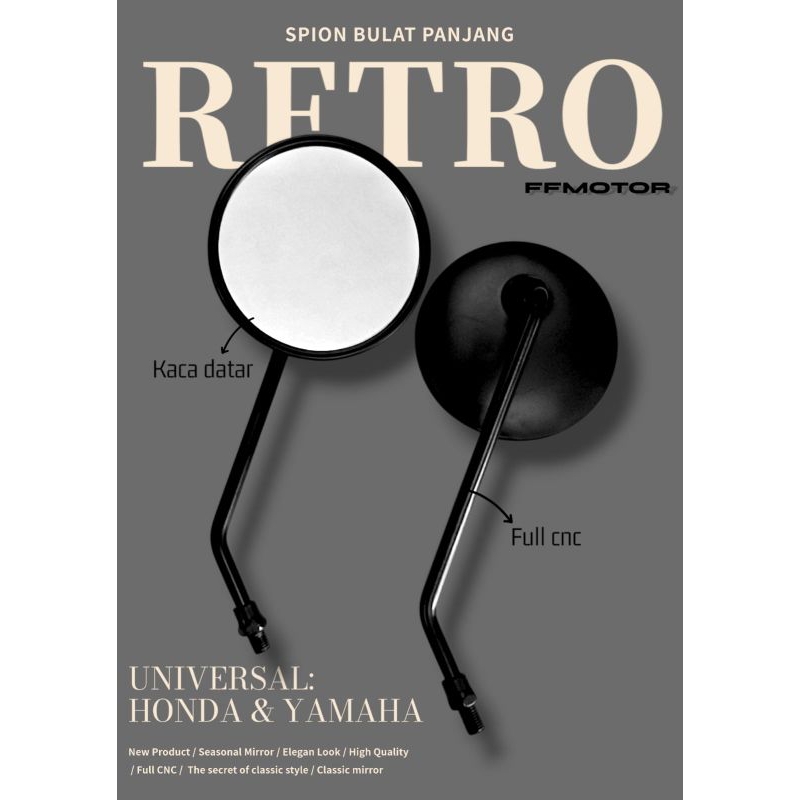 Spion motor variasi model vespa classic warna chrome hitam universal motor fino grand filano scoopy fazzio beat mio vario tangkai panjang dan pendek