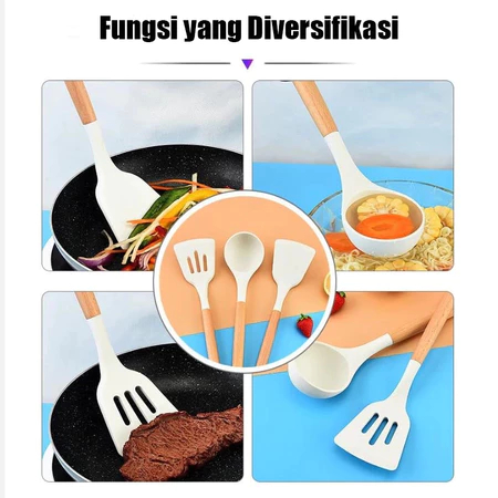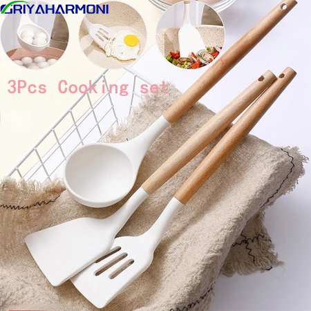 Bahan Silikon Kuat Alat Masak Tumis Goreng 3pcs Alat Masak Silicone Cooking Utensil Spatula Silicon Utensile Tahan Panas Silikon Kitchen Tool