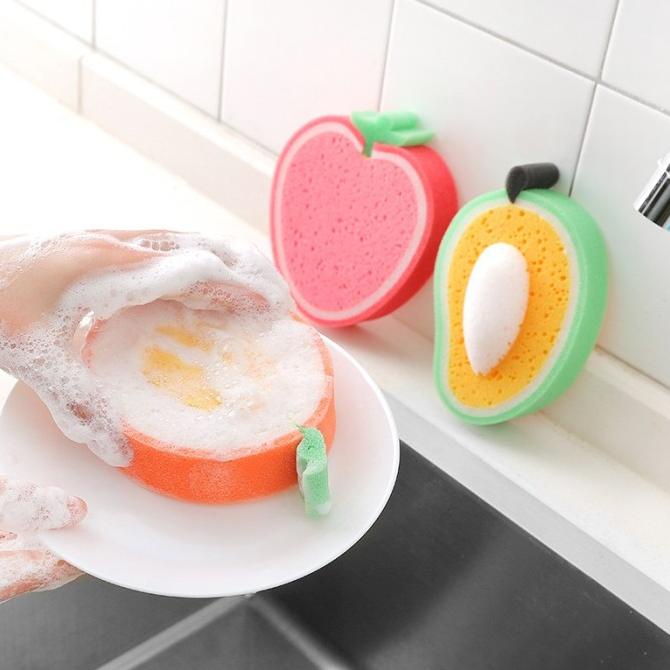 Spon Cuci Piring Tebal Motif Aneka Buah Buahan Fruit Sponge Spon Unik