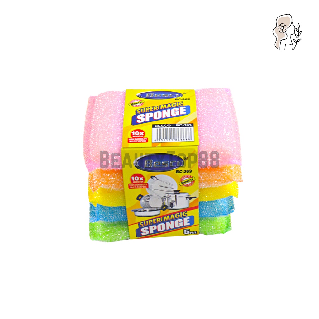 Spons Busa Cuci Piring Polos / Spon Bantal Pelangi Warna Warni / Super Magic Sponge Besco [ISI 5 PCS]