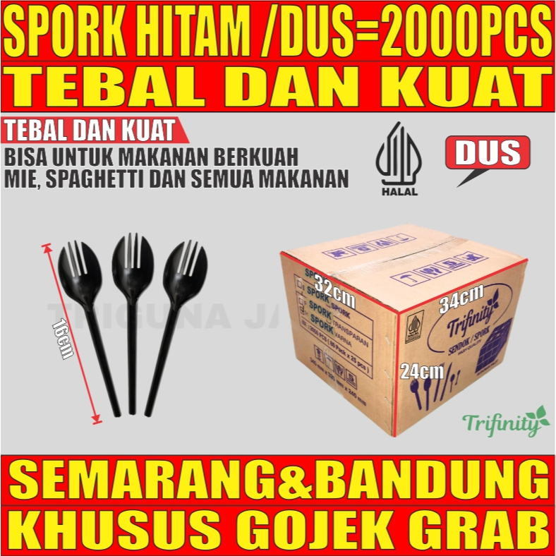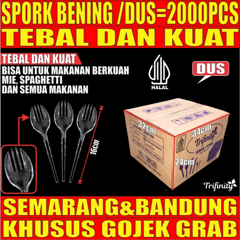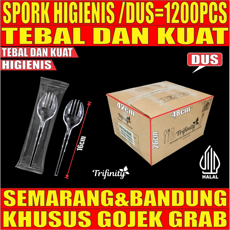 Spork Higienis Tebal 3.3gr Kuat Bening / Putih / Hitam Dus Bungkus Plastik Steril Trifinity GJK