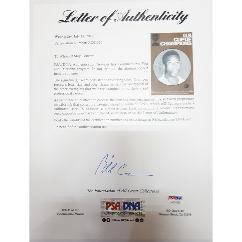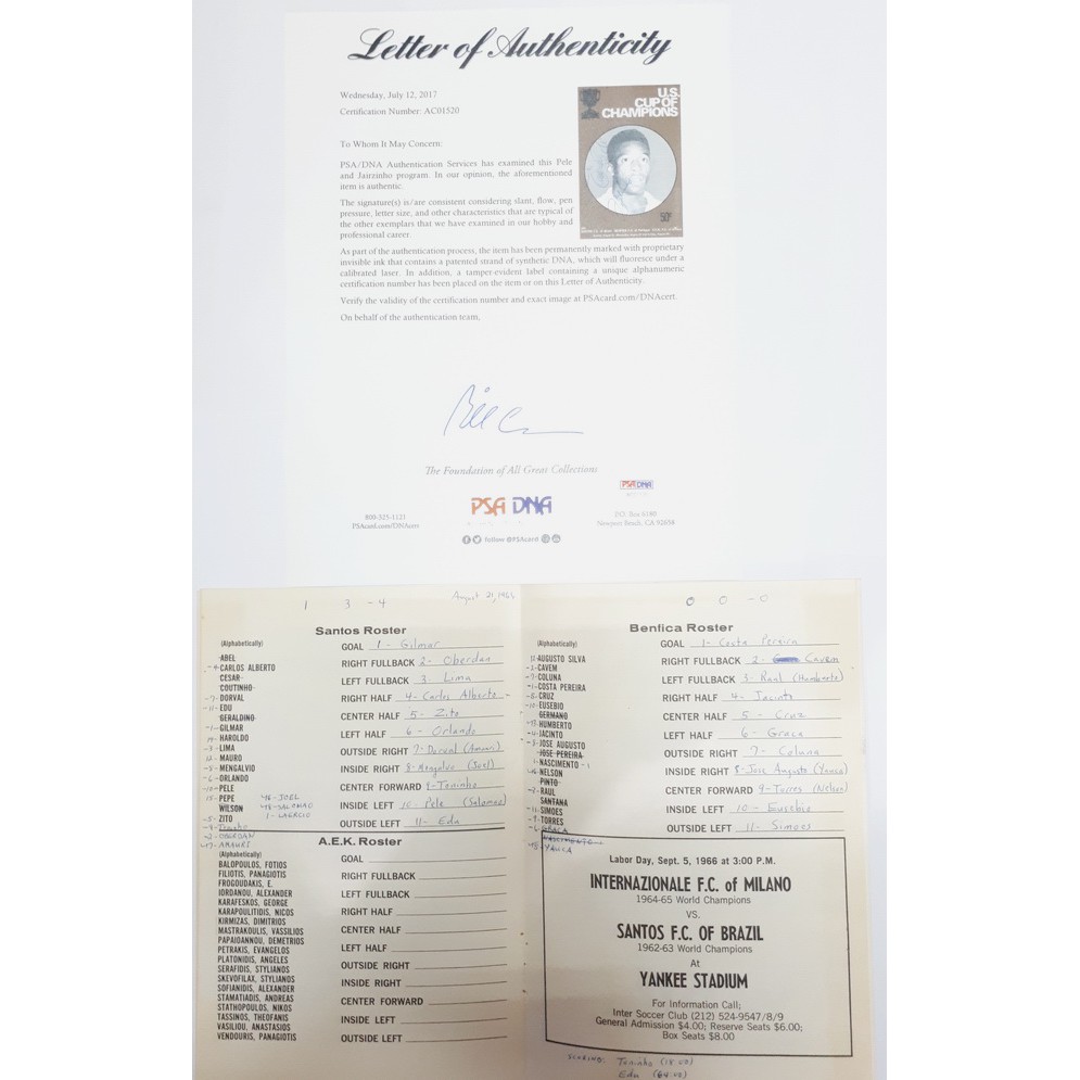 Sports Memorabilia U.S. Cup of Champions Soccer Program Tanda Tangan Pele Sertifikat PSA DNA