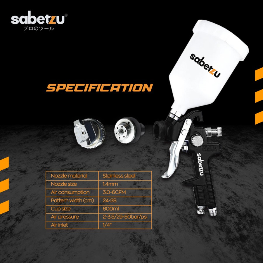 Spray gun HVLP 600ml 1.4mm semprotan angin cat spraygun udara SABETZU - semprotan hvlp cat angin kapasitas tabung 600 ml
