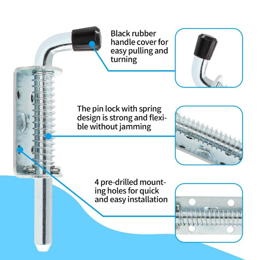 Spring Loaded Hinges 13mm Stainless Steel Heavy Duty Pin Bolt Lock Assembly Latch Door Stopper Injak Penahan Pintu