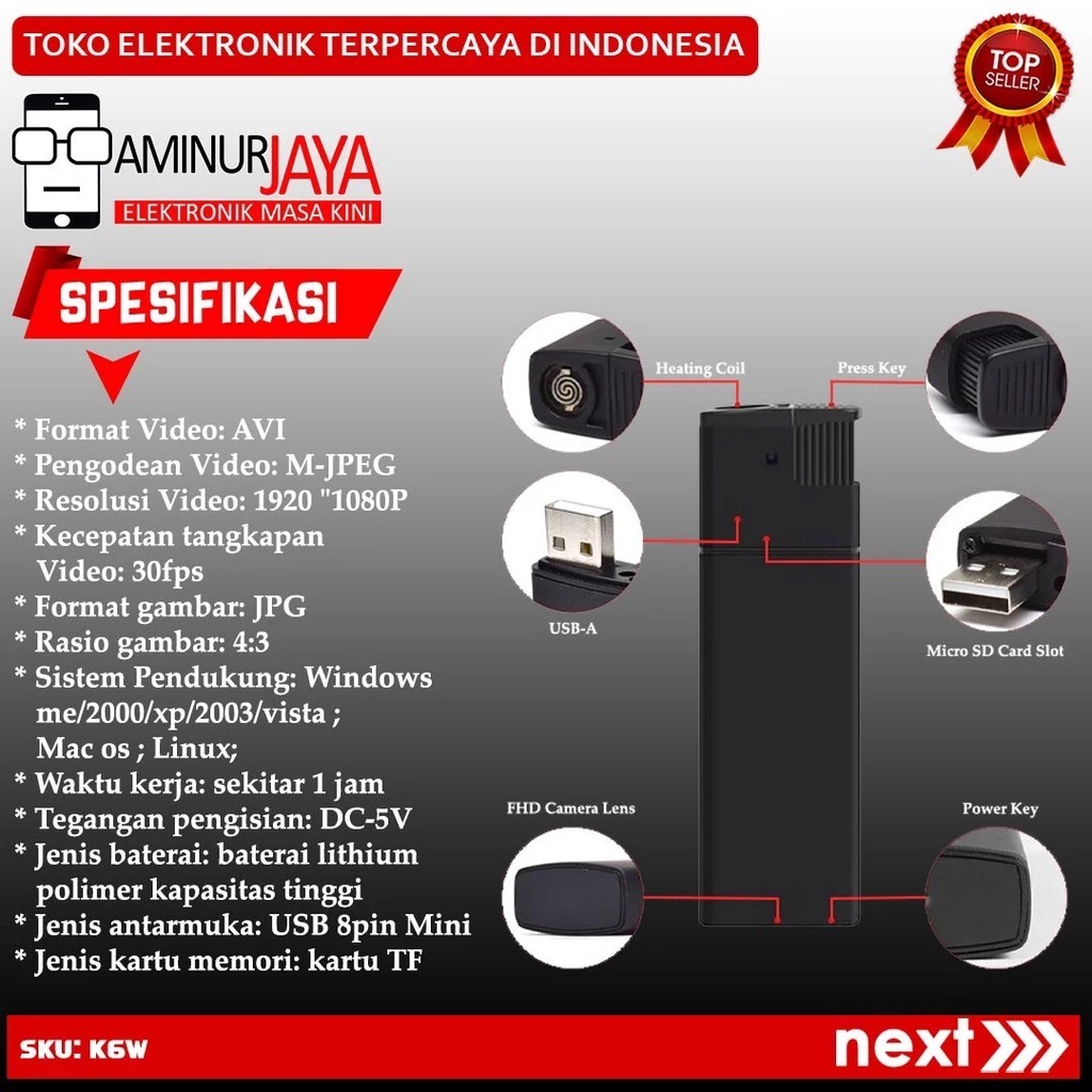 Spycam Camera Korek Elektrik K6 Wifi Lighter V18 Hidden Spy IP Kamera Unik Pengintai Mata mata CCTV Mini Tersembunyi Kamera Pengawas Keamanan Rumah Home Security Cam Camcorder Recording Perekam Vidio Audio Poto Recorder Kamera Intai Kecil Murah Original