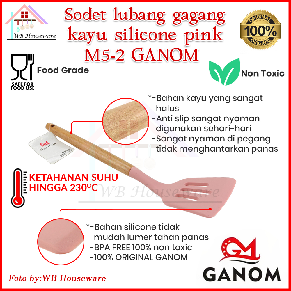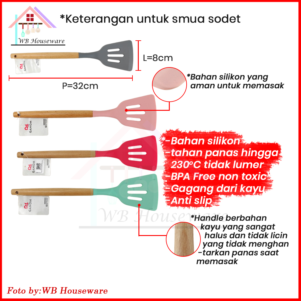 GANOM Sodet lubang silicone gagang kayu warna / sutil spatula tahan panas