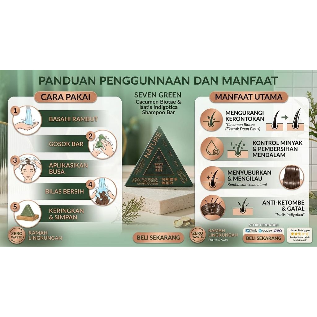 [Ready Stock] Nature Seven Green Shampoo Bar Viral Ori 120gr, Anti Rontok, Anti Ketombe, Penumbuh Rambut Halus, Herbal Alami