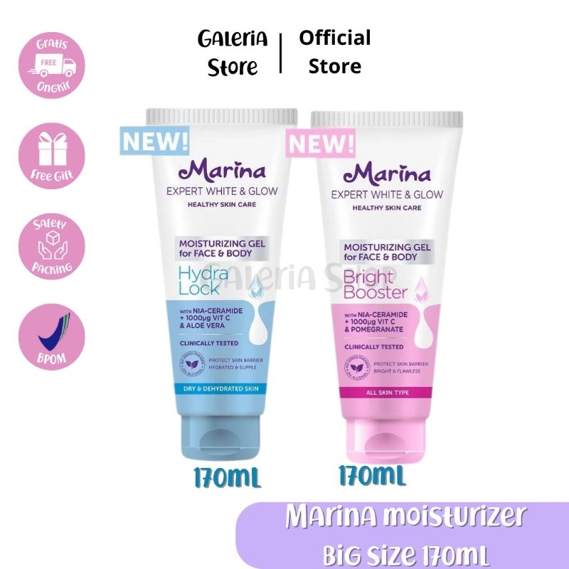 (READY STOK) MARINA EXPERT WHITE & GLOW MOISTURIZING GEL FOR FACE & BODY HYDRA LOCK FULL SIZE 170ML | MOISTURIZER FACE & BODY MARINA 170ML | PELEMBAB MARINA